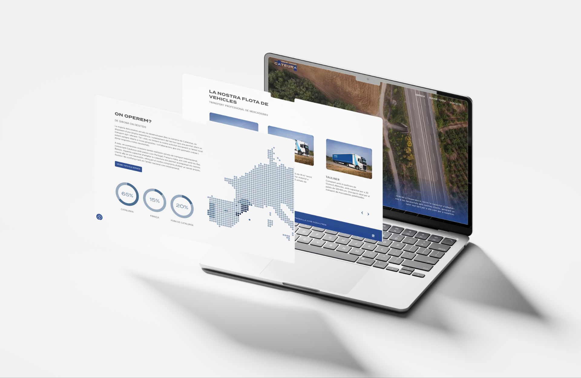 El diseño final combina robustez y claridad: un entorno limpio, funcional y visualmente potente, pensado para facilitar la navegación del usuario y transmitir la confianza de una empresa con experiencia. La web está adaptada a todos los dispositivos y optimizada para ofrecer una experiencia ágil, directa y profesional. El resultado es una web moderna y coherente con la evolución de Grup Transcateura, que refleja su crecimiento y su apuesta por la innovación sin perder su esencia familiar y cercana.